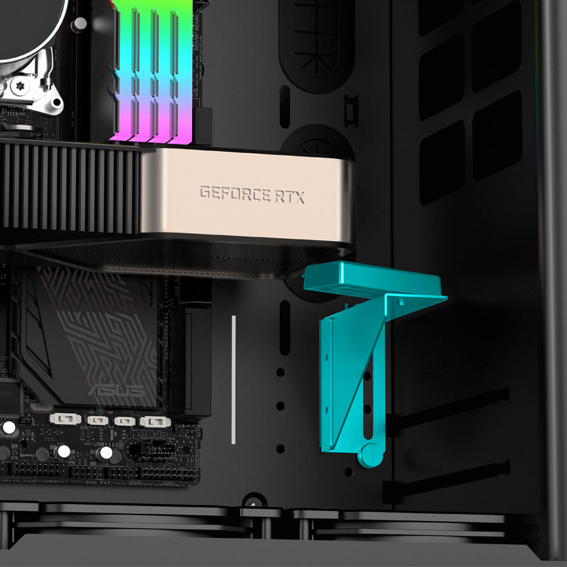 i 400 预装了双调节位的显卡支撑架,可灵活调节支撑点,让较长的高性能显卡始终保持水平状态。