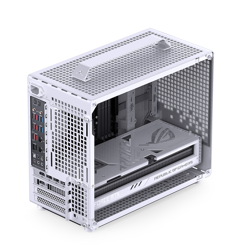 主体尺寸370mm*186mm*295mm(深/宽/高,不含提手/脚垫等突出物),以近似ITX机箱尺寸实现对于全尺寸MATX主板以及长显卡的兼容。